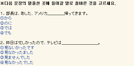 ÇØ¼® ºó ÄÀ» ±Ü¾î ÇØ¼®°ú Á¤´äÀ» È®ÀÎÇϼ¼¿ä.1.[ ºÎÀå´ÔÀº ³»ÀÏ ¹Ì±¹¿¡¼ µ¹¾Æ¿É´Ï´Ù.]2.[ ¾îÁ¦´Â ¹Ù»¦±â ¶§¹®¿¡ ÅÚ·¹ºñÀüÀº º¸Áö ¾Ê¾Ò½À´Ï´Ù.] Á¤´ä 1.[¨ç¹ø]2.[¨é¹ø]