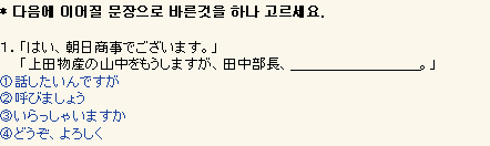 ÇØ¼® ºó ÄÀ» ±Ü¾î ÇØ¼®°ú Á¤´äÀ» È®ÀÎÇϼ¼¿ä.1.[ 1.¡¸³×, ¾Æ»çÈ÷ »ó»çÀÔ´Ï´Ù.¡¹¡¸¡¸¿ì¿¡´Ù ¹°»êÀÇ ¾ß¸¶³ªÄ«¶ó°í ÇÕ´Ï´Ù¸¸, Ÿ³ªÄ«ºÎÀå´Ô( )¡¹]¨ç[ À̾߱âÇÏ°í ½Í½À´Ï´Ù¸¸]¨è[ ºÎ¸¦±î¿ä?]¨é[ °è½Ê´Ï±î?] ¨ê[ ºÎµð Àß ºÎŹÇÕ´Ï´Ù.] Á¤´ä 1.[¨é¹ø]