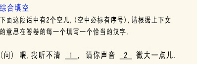 [¾Æ·¡ÀÇ ´Ü¶ô¿¡ µÎ°³ÀÇ ºóÄÀÌ ÀÖ´Ù, À§ ¾Æ·¡ ¹®ÀåÀÇ Àǹ̿¡ ±Ù°ÅÇØ °¢°¢ ¾Ë¸ÂÀº ÇÑ ÀÚ¸¦ ½á ³ÖÀ¸¼¼¿ä. ¿©º¸¼¼¿ä, Àß ¾È µé¸®´Âµ¥¿ä, ¼Ò¸® Á» Å©°Ô ³»ÁÖ¼¼¿ä.
