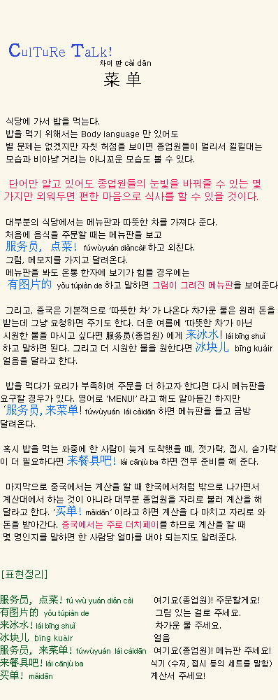 Áß±¹¿¡¼ »ì¾Æ°¡±â - ½Ä´ç¿¡¼ÀÇ TIP